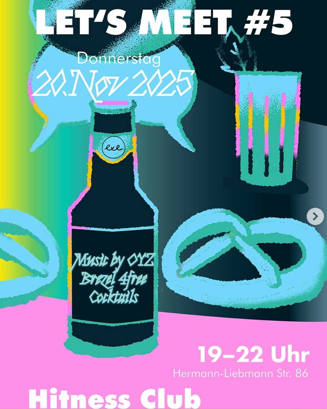 Das fünfte Let's Meet findet im Hitness Club statt. Das Netzwerk zählt inzwischen über 80 Artists. Auf der Agenda: Feedback-Runden zur Plattform, Planung von Winterkollektionen und der Ausblick auf das kommende Jahr. Die Treffen sind zu einem festen Format geworden — einem Ort, an dem die exe-Community zusammenkommt, Ideen weiterentwickelt und die nächsten Schritte gemeinsam plant.